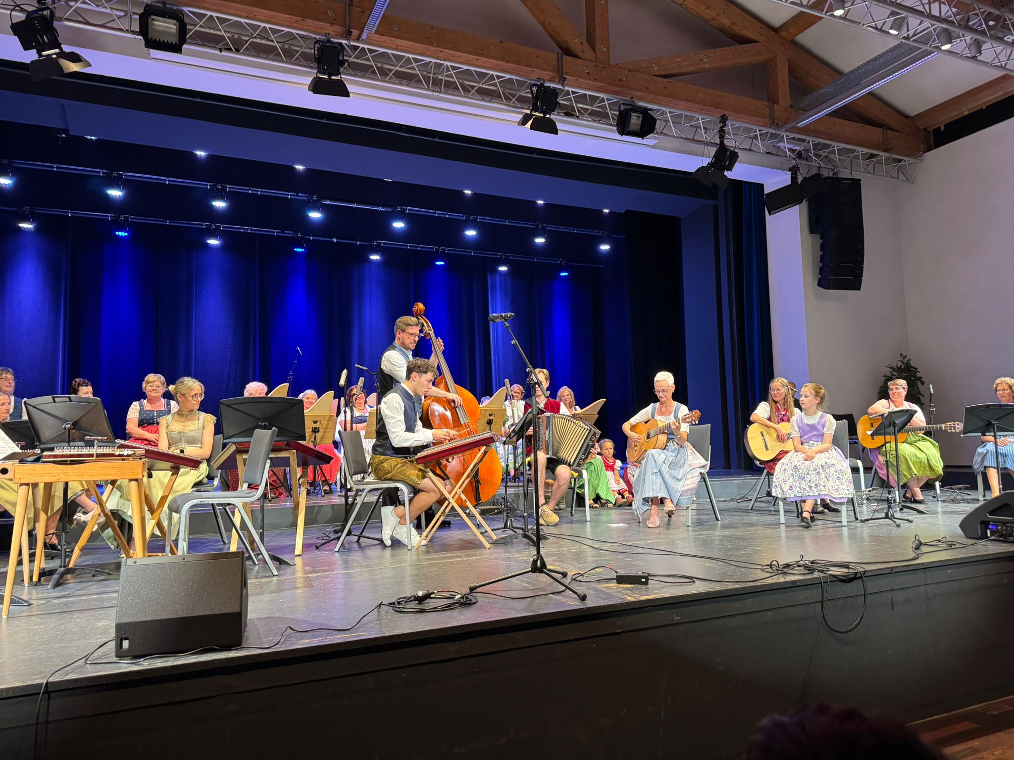 Insgesamt 42 Musikerinnen und Musiker der Städtischen Musikschule Dingolfing sorgten für die musikalische Gestaltung des Abends. Mit Stubnmusi, Zithern, Gitarren, Dreigesang und Gesangssolisten entstand eine einzigartige Atmosphäre, die das Publikum gleichermaßen zum Lachen und Nachdenken brachte. Mal nachdenklich, mal heiter – aber immer mit Tradition, Tiefe und Gefühl.